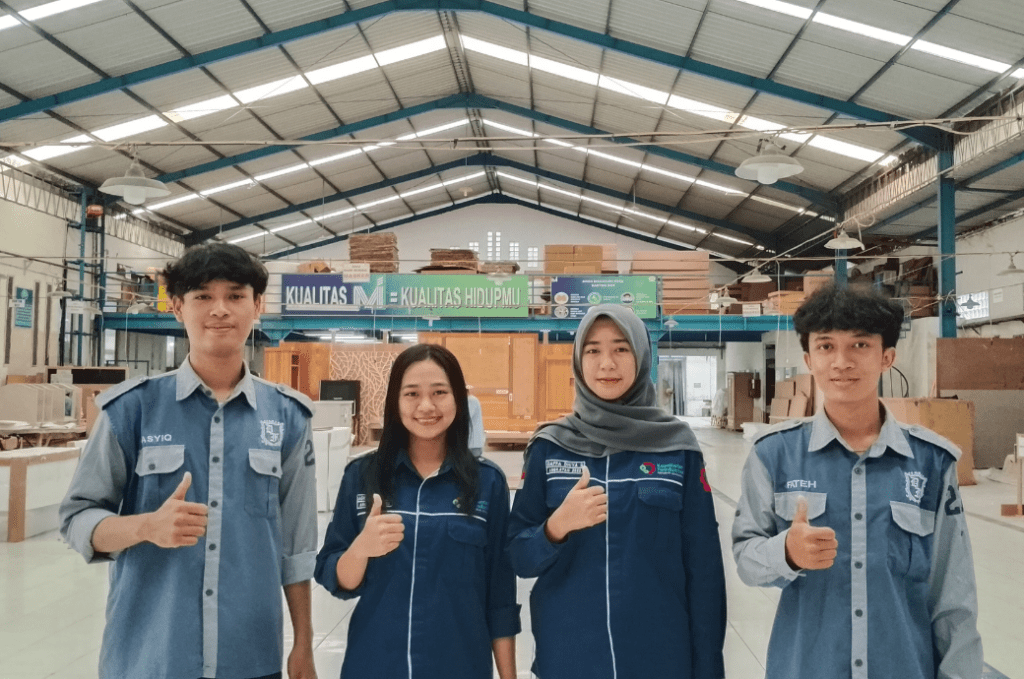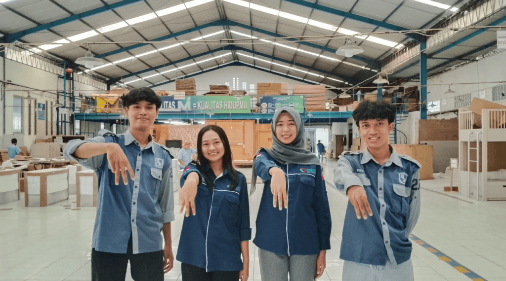 As part of its commitment to support vocational education and improve the quality of industrial human resources, Mebel International (MI) consistently provides internship opportunities for students from Politeknik Industri Furniture dan Pengolahan Kayu. This program is designed to offer real-world experience in the furniture industry and strengthen the connection between education and industry.